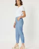 Elevate your style in the Clarity Parachute Stitch Detail Pant at The Wardrobe. An easy pull on style pant, lightweight stretch fabric, flat front waistband and elastic back for fabulous fit and comfort Modern tapered leg with contrast stitch detail Designed to wear day to night Fit: True to Size Buy your usual size