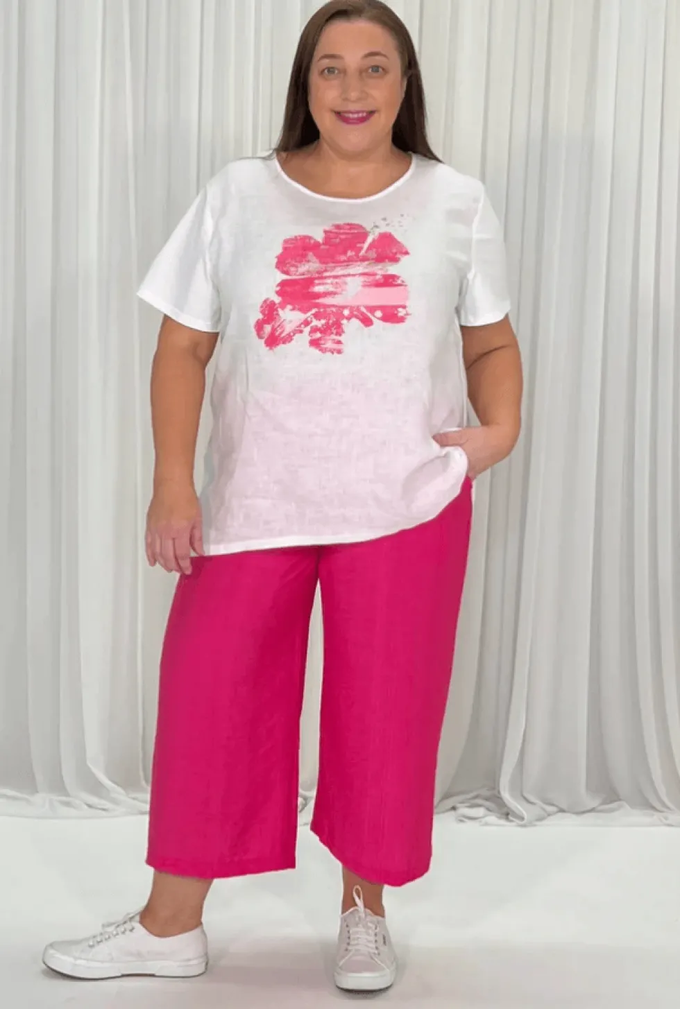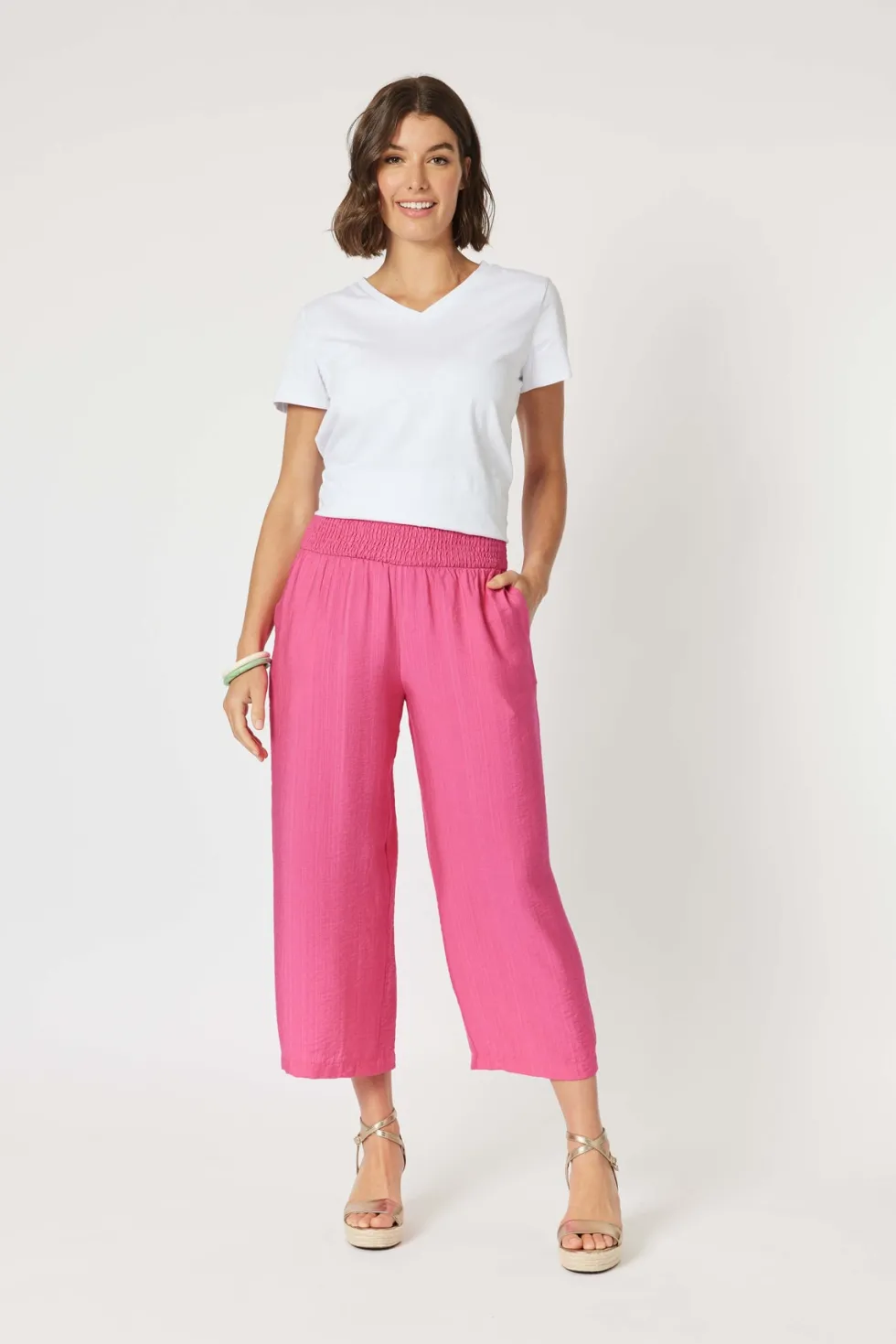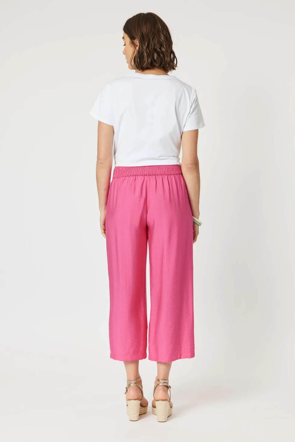 Villa Pant – Pink 45875 by Clarity at The Wardrobe Crafted from a premium textured viscose blend The Villa Pant By Clarity is this seasons "All Rounder" The Wide leg is so on trend and effortless to style in a dressy or casual way The elastic waistband creates incredible all day comfort You need a pair in every colour