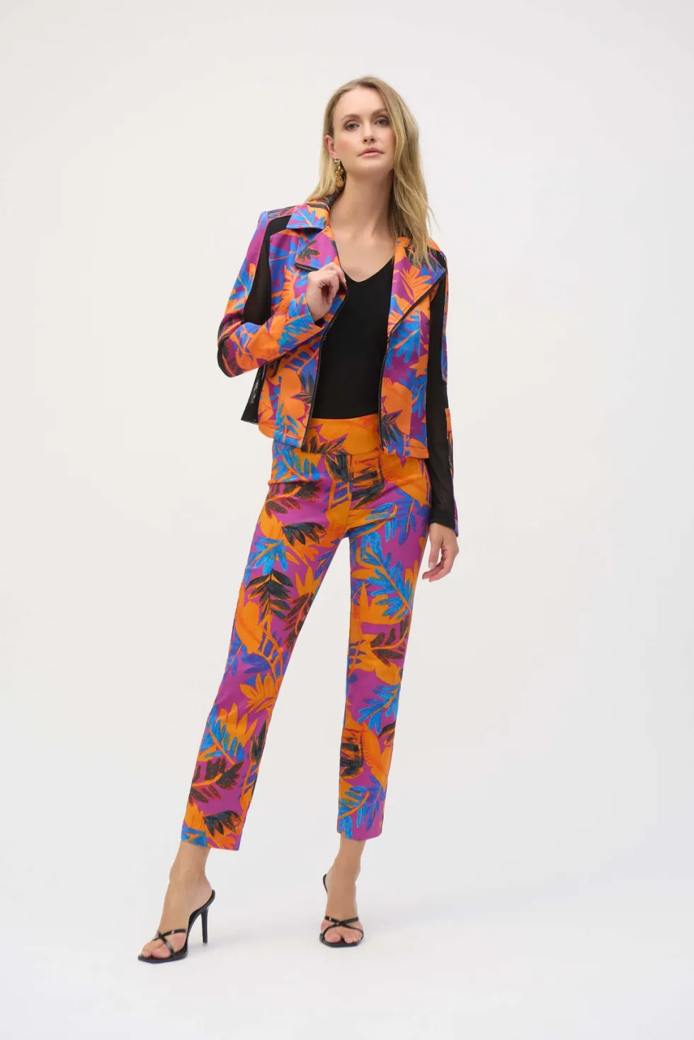 Endless Summer Millennium Tropical Print Straight Leg Pants 252231 by joseph Ribkoff at The Wardrobe. Bring island vibes with you wherever you go in these straight leg pants, featuring a vibrant tropical print that brightens up any room. The structured contour waistband flatters your shape, while the easy pull-on style