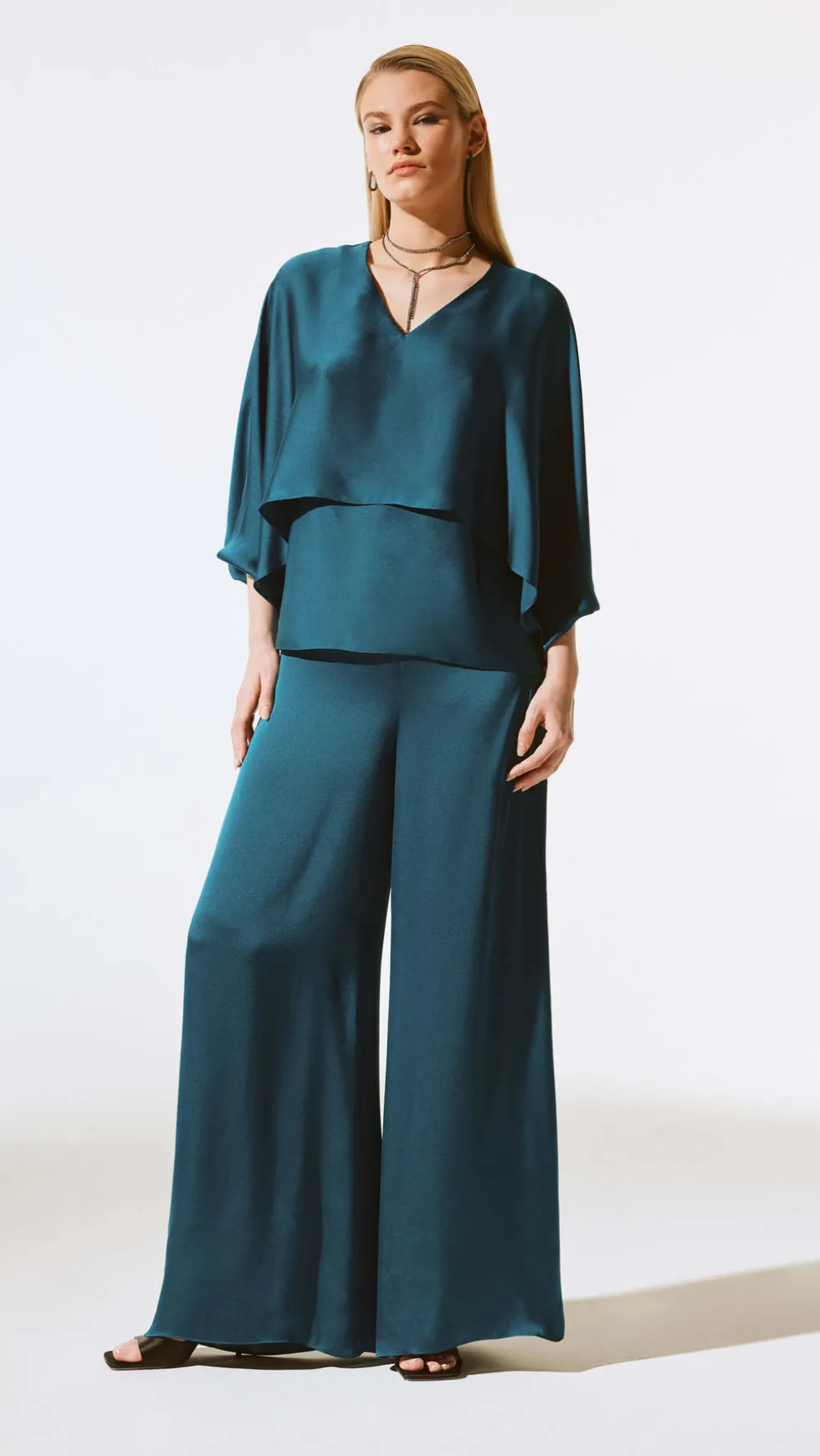 Liberty Signature Wide Leg Pants – Empress/Midnight Blue 221340F24 by Joseph Ribkoff at The Wardrobe. These stunning and simple wide-leg pants are the epitome of dressing to impress. With lustrous flowing fabric and a soft contour waistband, these versatile pants complement your body beautifully. Walk with confidence w