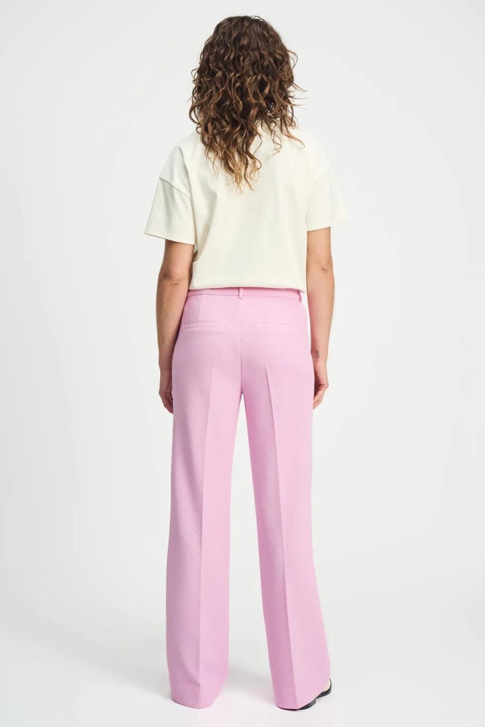 Wide Leg Textured Pant – Rose Pink 9105 by POM Amsterdam at The Wardrobe Discover these soft pink pants in our popular Piqué fabric made from recycled polyester. In an enhanced fit. Pair with the matching blazer and complete your look. 90% Recycled Polyester 7% Polyester3% Elastane Gentle machine wash at 30 degrees gen