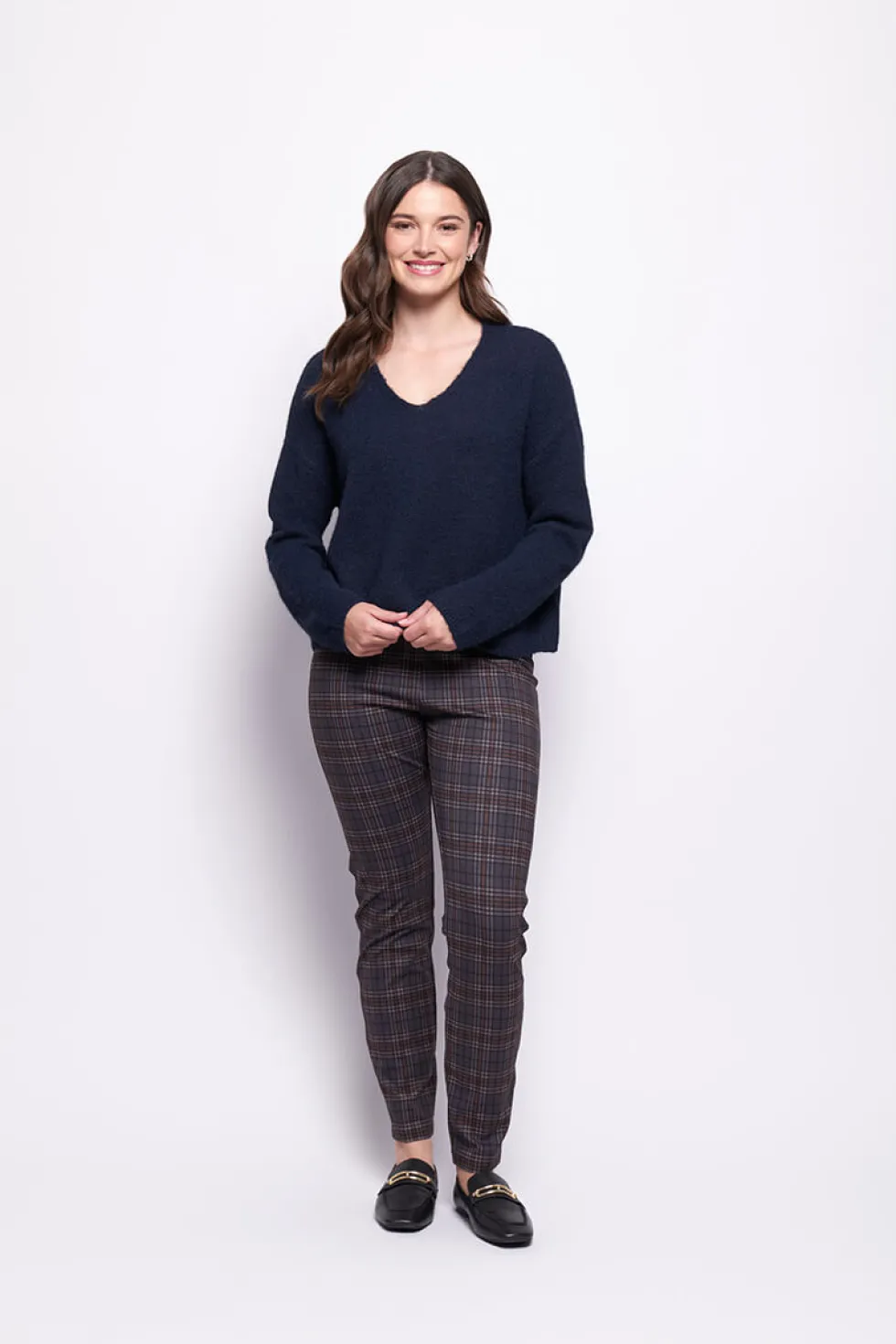 Go To Print Pant- Check in FO8095 by Foil at The Wardrobe. Pont Pant – Pull up , hidden elastic waist band. Slim leg, Stretchy 79% Polyester , 16% Viscose , 5% Elastane Cool machine gentle wash.