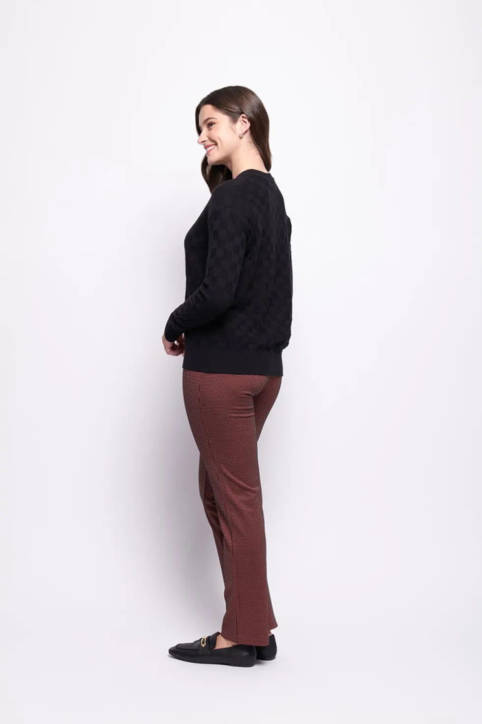 Pic Of The Bunch – Red Diamond FO5190 by Foil at The Wardrobe. Pont Pant – Pull up , hidden elastic waist band. Slim leg, Stretchy 65% Polyester, 30% Rayon, 5% Elastane Warm gentle machine Wash. Drycleanable