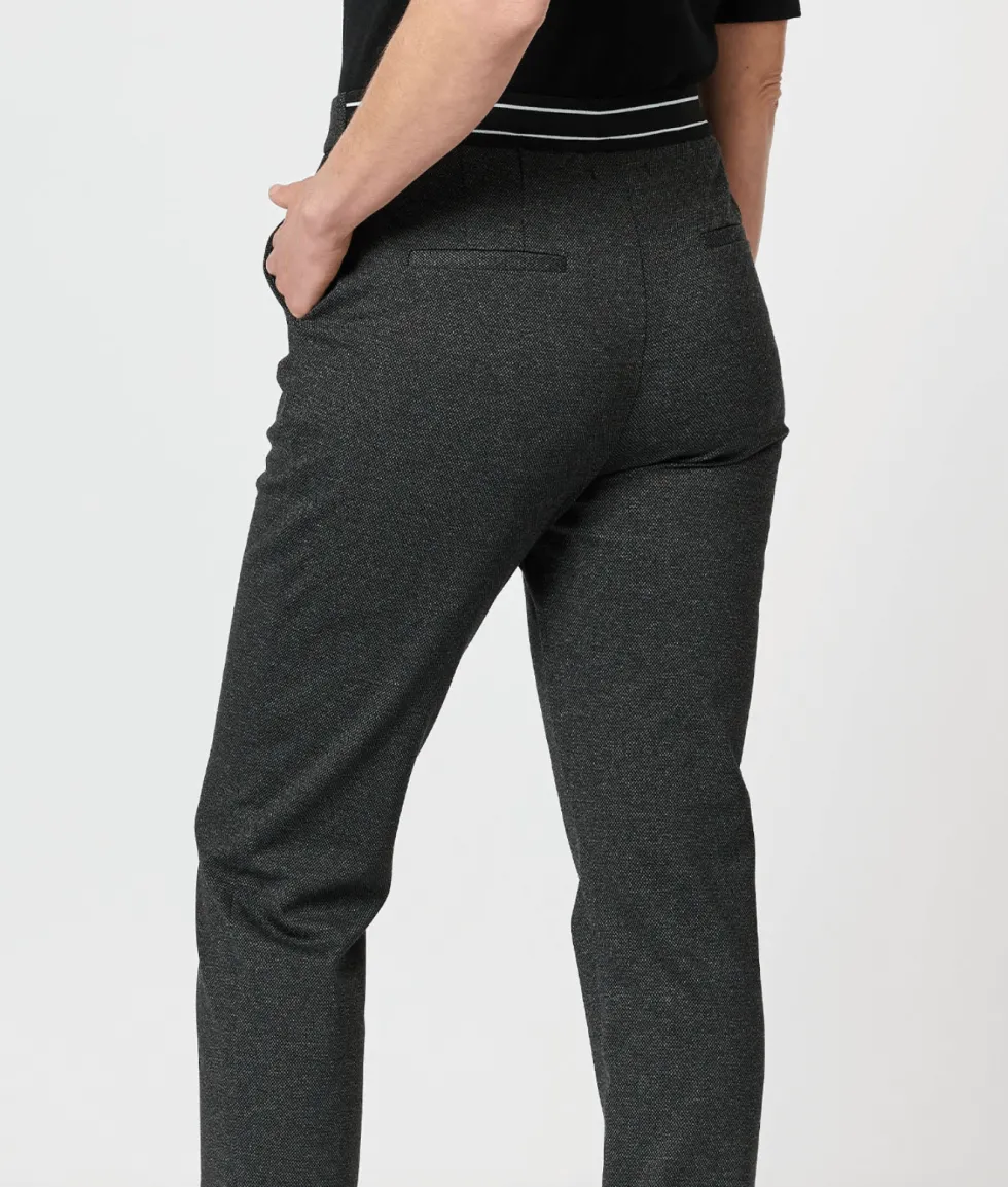 36544 – Textured Ponte Pant – Charcoal by Gordon Smith At The WardrobeFeatures: 62% Viscose / 32% Polyamide / 6% Elastane No fasteners Exposed elastic waistband detail on the back Side pockets Full length Pull on style Fit Guide: Straight leg style