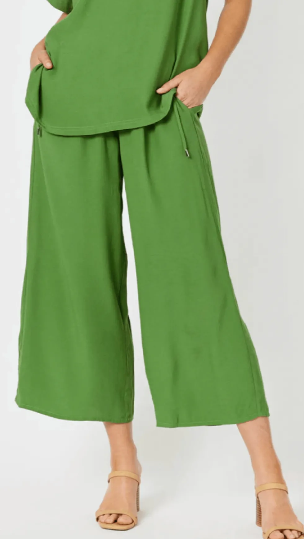 Lourve Luxe Pant – Green 46349 by Hammock and Vine at The Wardrobe Get set to impress in the stunning Louvre Luxe Pant by Hammock & Vine Their signature style is relaxed effortless and sophisticated Easy pull on style with the most comfortable stretch waist and adjustable ties Make it a set with the matching Louvre