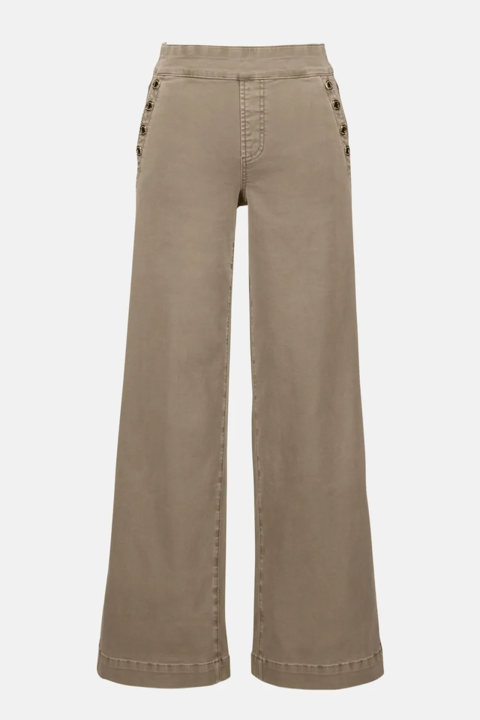 Best Bookers Classic Wide Leg Pull-On Jeans – Fawn 254919 by Joseph Ribkoff at The Wardrobe. Designed with the classic wide leg silhouette you love, these pull-on jeans feature stylish snap buttons on the pockets. Made from soft, stretchy Repreve® denim, they’re a perfect blend of comfort and style for effortless casu
