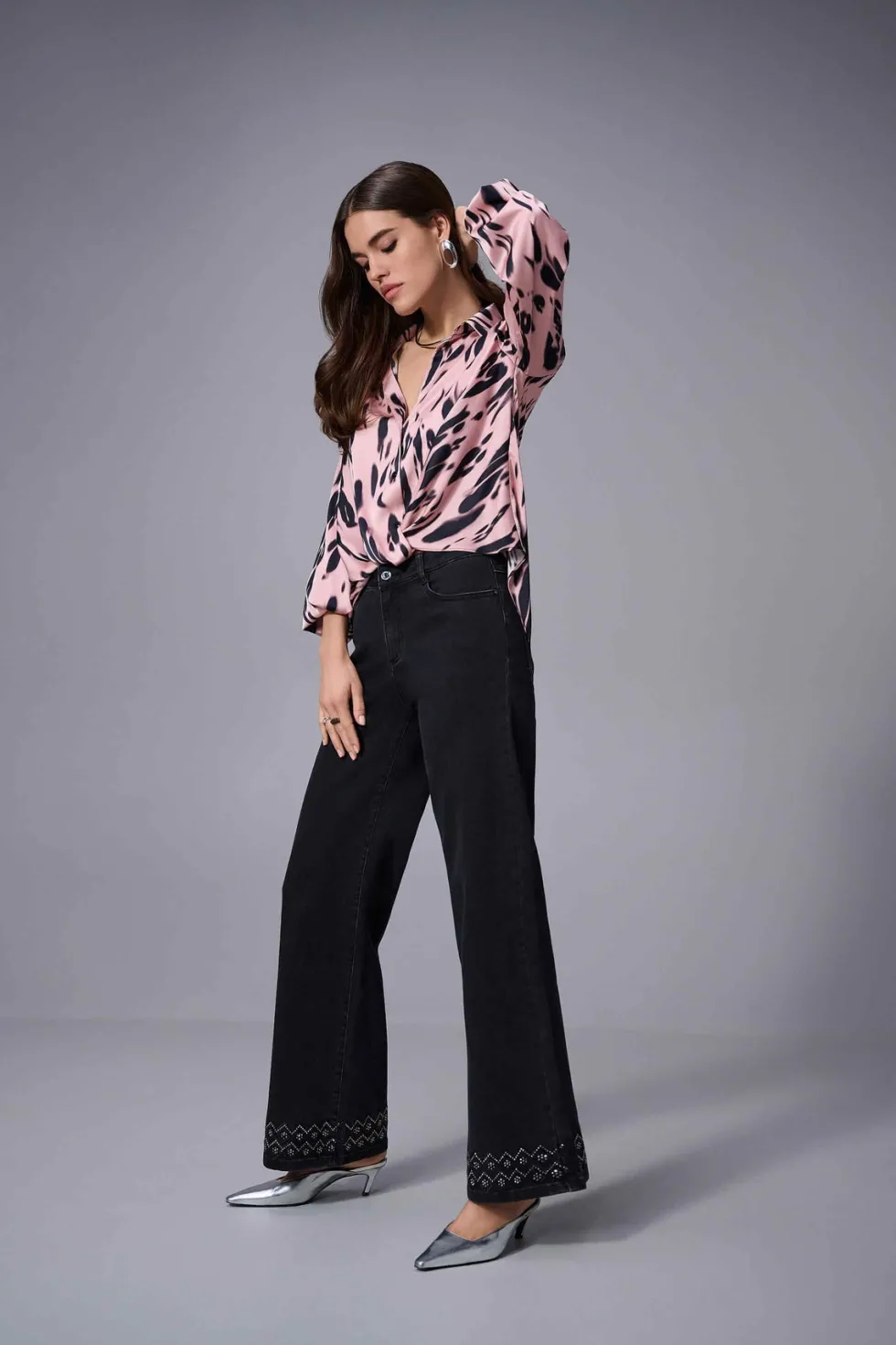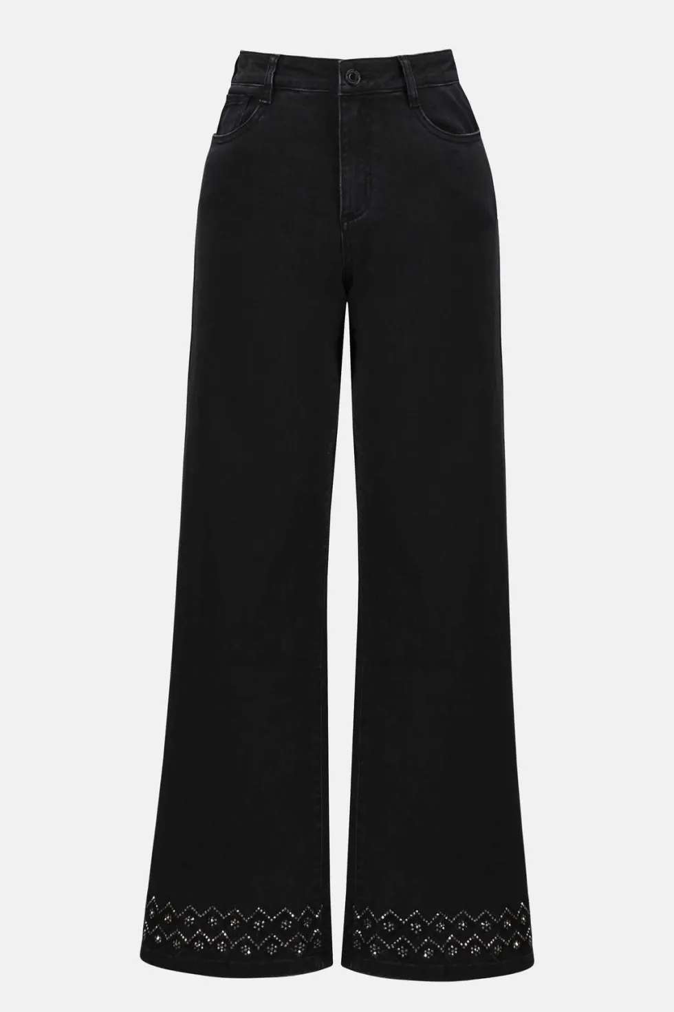 Classic Wide Leg Stretch Denim Jeans – Charcoal Grey 253988 by Joseph Ribkoff at The Wardrobe What do you get when you combine Repreve® stretch denim with a timeless wide-leg silhouette and a five-pocket style? The ultimate everyday essential. These chic jeans feature eye-catching zigzag embroidery at the hem, adding a
