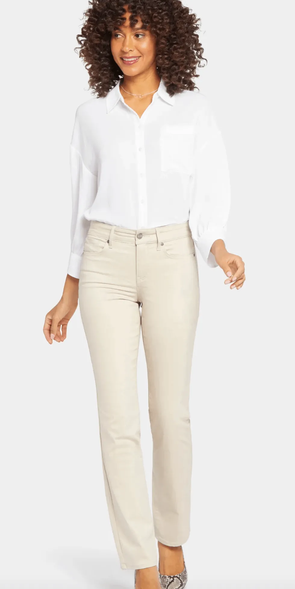 Marilyn Straight – Feather MFOSM2299 by NYDJ at The Wardrobe. You can't go wrong with our iconic bestselling fit. The curve-sculpting, figure-elongating construction of NYDJ's Marilyn Straight Jeans in Petite pairs well with everything, in a classic straight-leg silhouette. Lift Tuck® Technology uses a proprietary slim