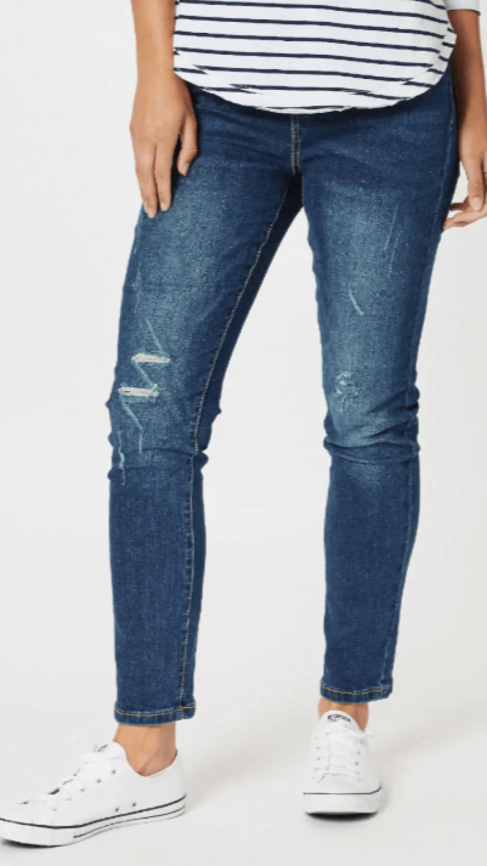 LA Stretch Pull On Jean – Dark Denim 35371 by Threadz at The Wardrobe. We Love a stretchy Jean! Crafted from a super stretchy denim fabric with an encased elastic waistband that gives you 10/10 all day comfort Of course it has front and back patch pockets Don't worry about the distressing design feature being see throu