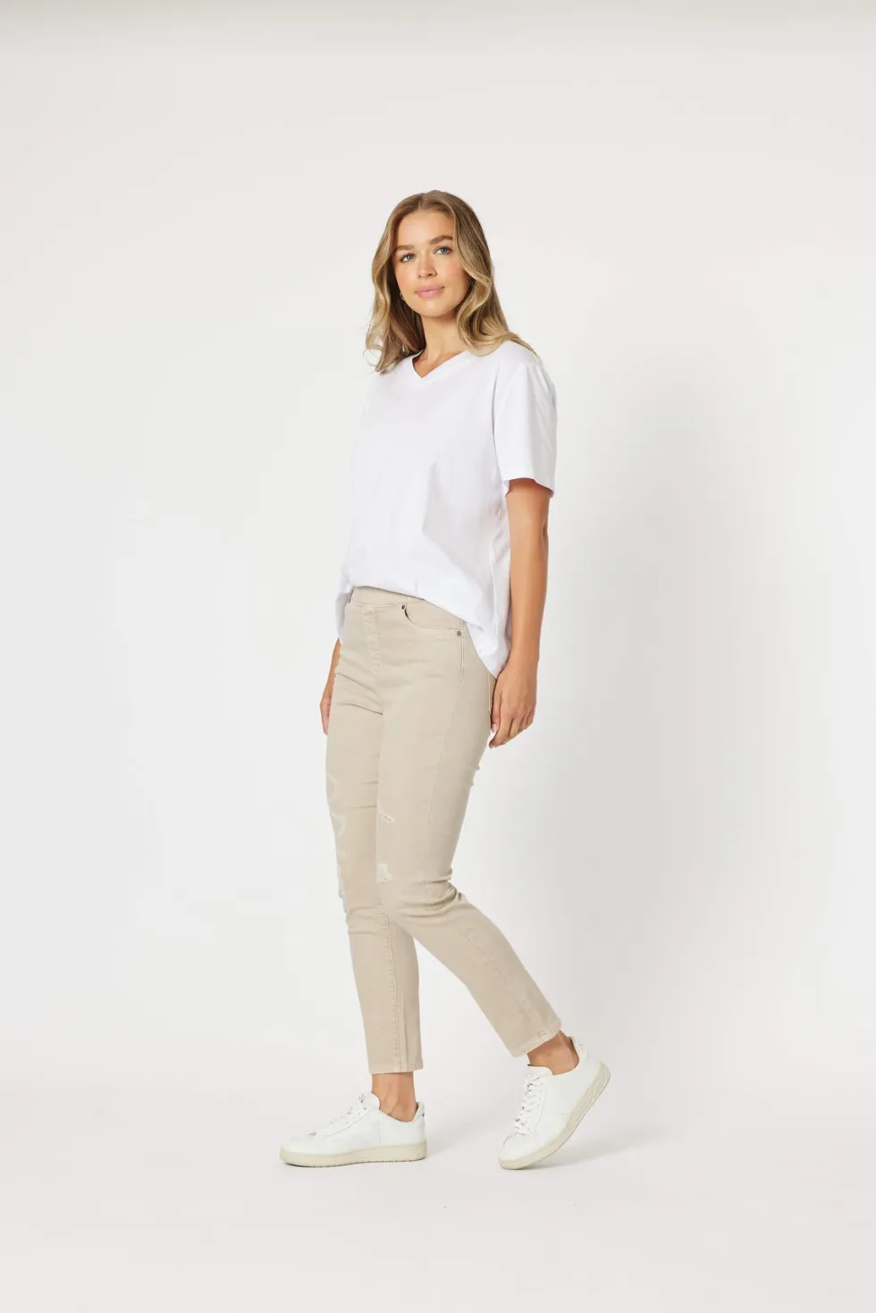 Pull On Ripped Jeans – Black TH35371 by Threadz at The Wardrobe Also available in Black Fitted through the leg Ankle grazer style on most Super stretch for all day fit and comfort Elastic waist for easy pull on fit Distressed finish Contrast stitching on pockets and seams Fabric backed distressed areas for comfort 4 Po