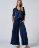 Selene Palazzo Pant from Loobie's Story At The Wardrobe. Silky viscose, wide leg palazzo pant with a shirred waistband. Featuring forward side seams for a flattering fit. Functional pockets. Composition:100% ViscoseCare Instructions:Gentle cool hand wash with like colours using mild detergent. Do not rub/soak/wring/b