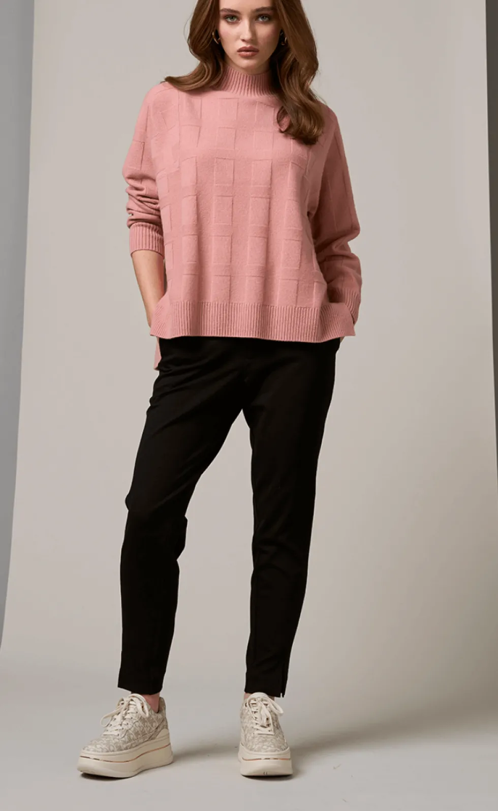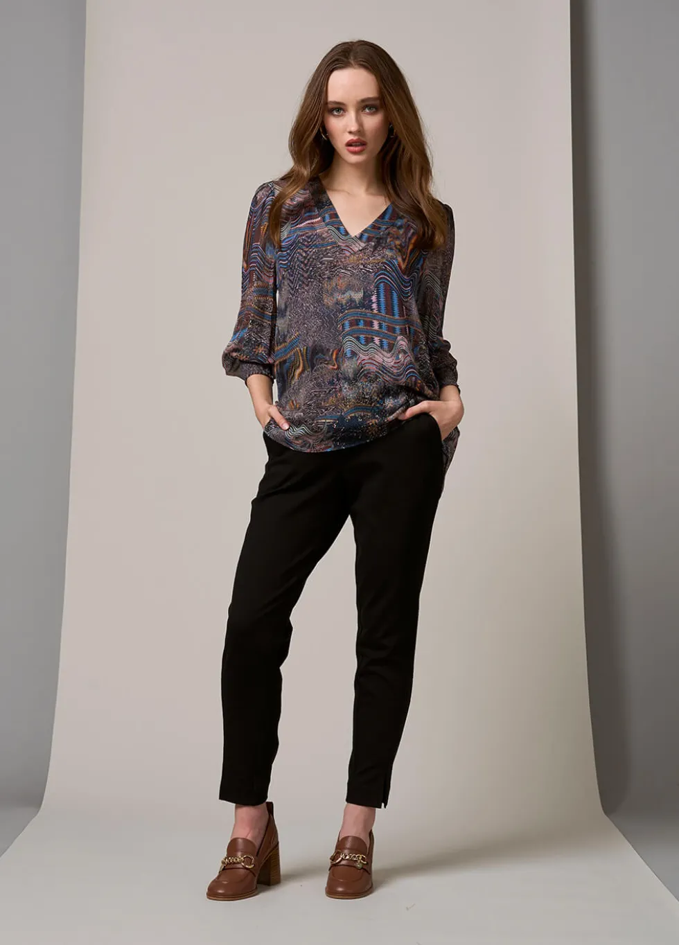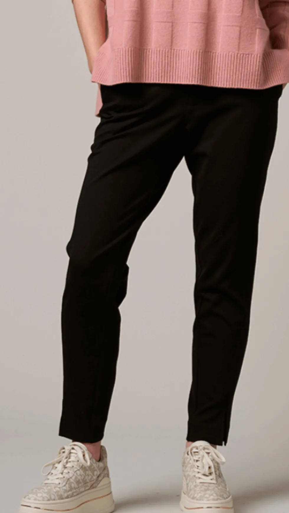 Soho Pant LS2955 By Loobie's Story at The Wardrobe. Slim fit ponte pant with a forward side seam and side panels for a flattering fit, with a front split at hem. 60% Rayon 35% Nylon 5% Spandex