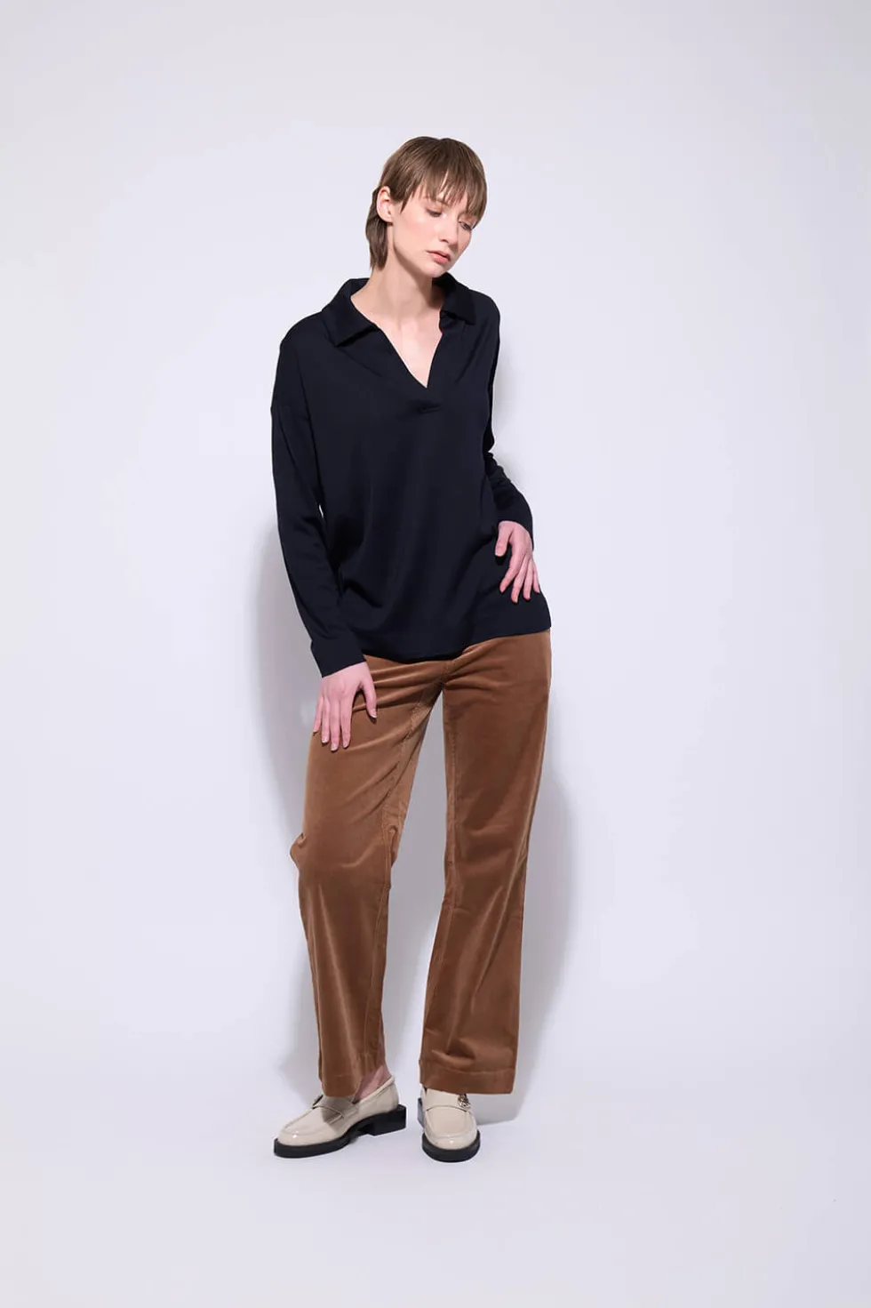 The Whale Rider Pant 2723 by Neris at The Wardrobe, comfortable and stylish, these cut-cord pants have stretch the offering a relaxed fit with a straight-leg design. Featuring side and back pockets, a mid-waist rise, and a button-and-fly closure, they’re perfect for casual wear or pairing with matching tops for a coord