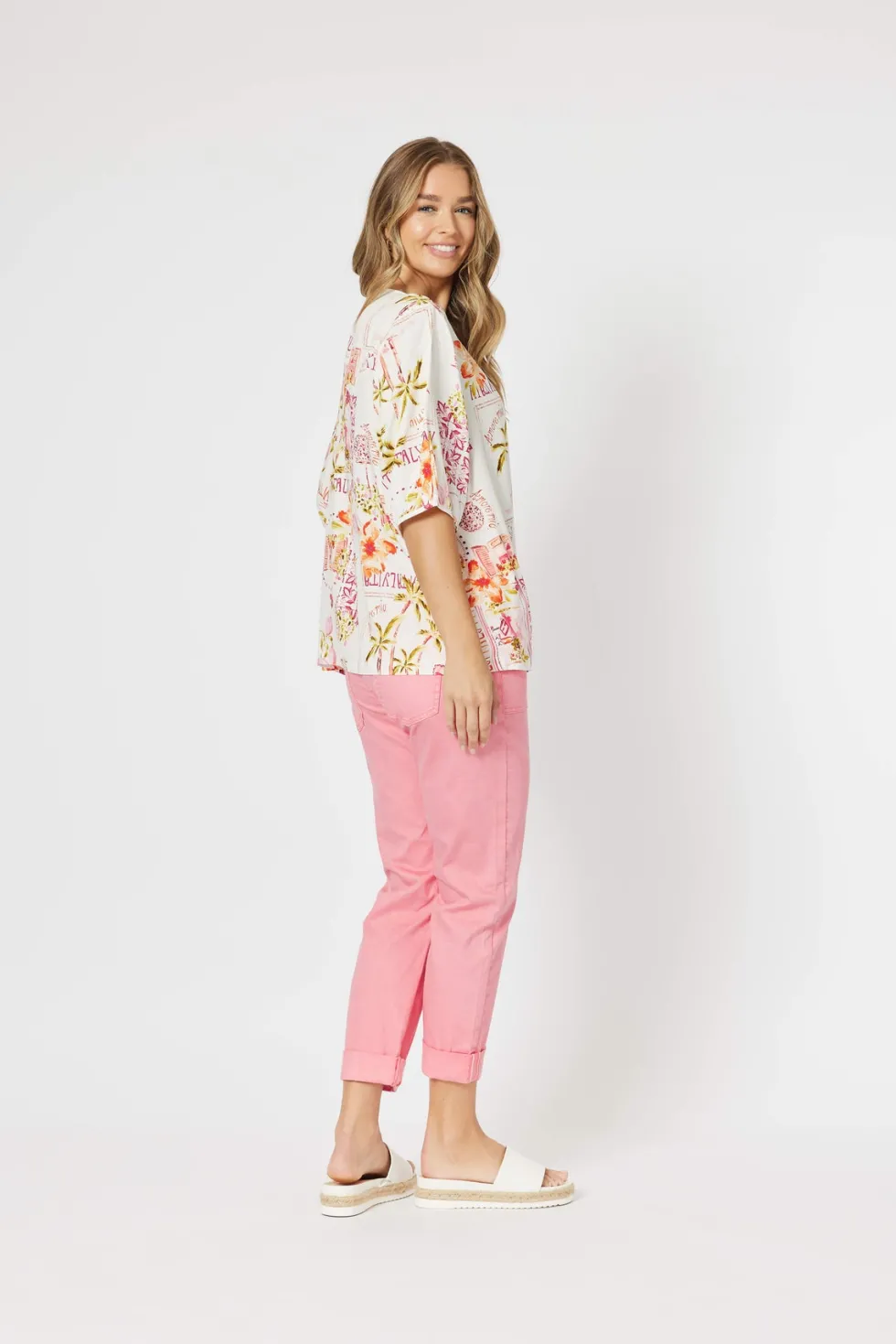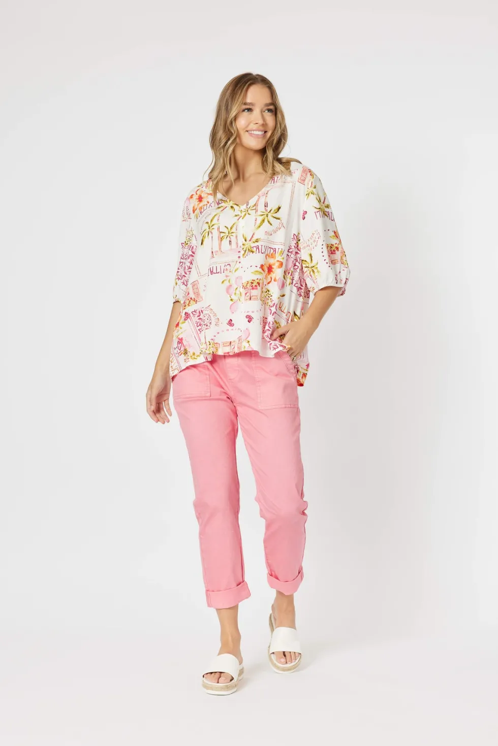 We love the simplicity in styling of the Ciao Bella Top by Threadz The print does all the talking on this one Easy pop over the head style with the most divine elbow length sleeves This light and floaty viscose fabric will have you looking and feeling fabulous from the moment you pop it on Pair back with the Bella Pant