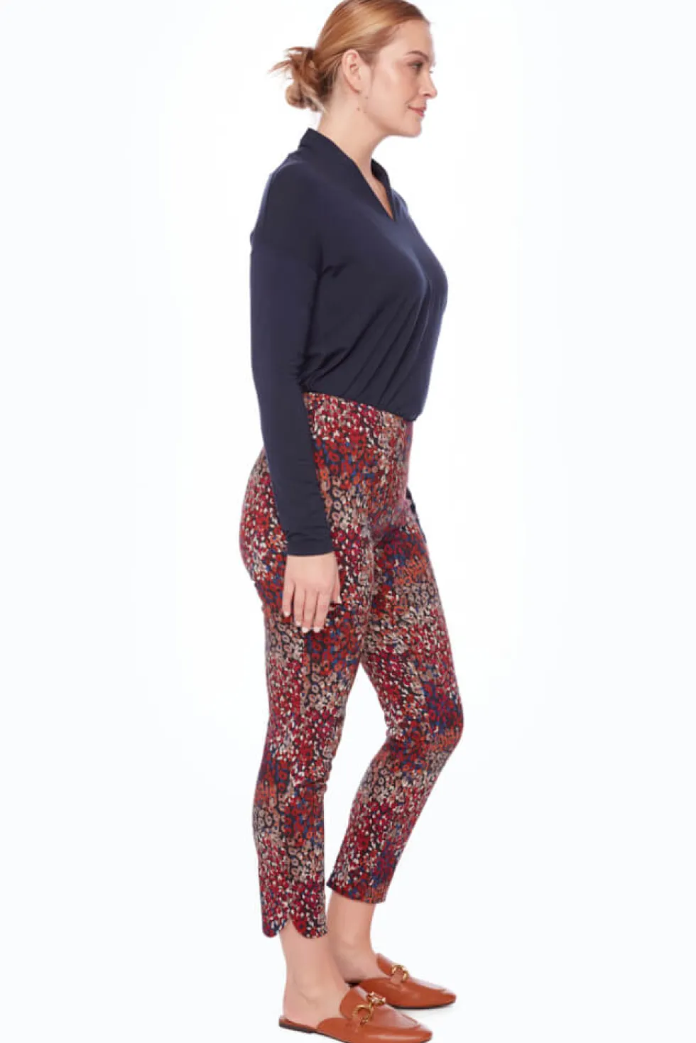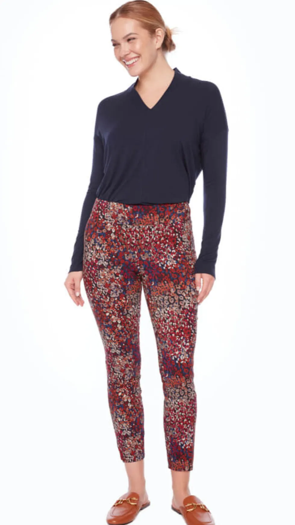 Petal-Slit Techno Ankle 28" Pant – Cranberry 68277 by Up Pants at The Wardrobe Make a sweet and stunning statement this season with trendy micro-florals. Featuring tiny buds in rich hues that pack a pretty punch, this happy piece exudes a whimsical allure that’s fun, fab, and decidedly feminine. Petal vents and a chic