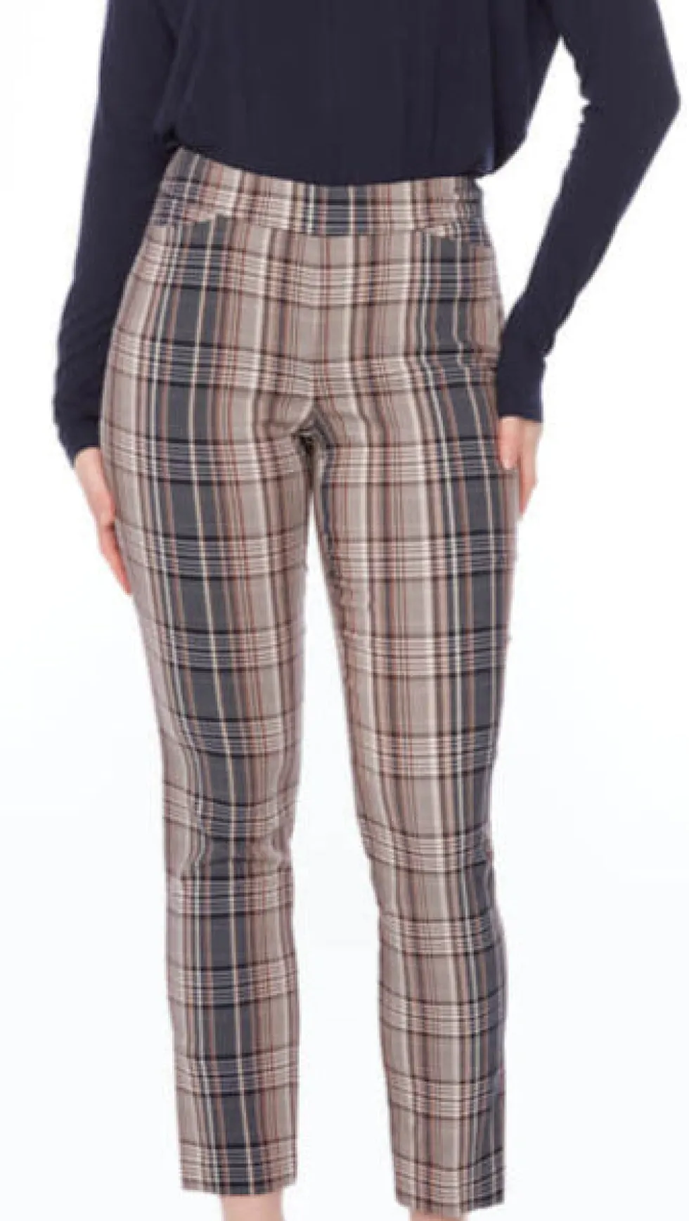 Plaid Techno Full Length Pant – Beige/Blue Waterford 68271 by Up Pants at The Wardrobe Polished and professional, this elegant piece is the perfect blend of old and new, featuring a heritage plaid reworked in a modern silhouette. The menswear-inspired print exudes a scholarly sophistication, rendered in crisp tones for