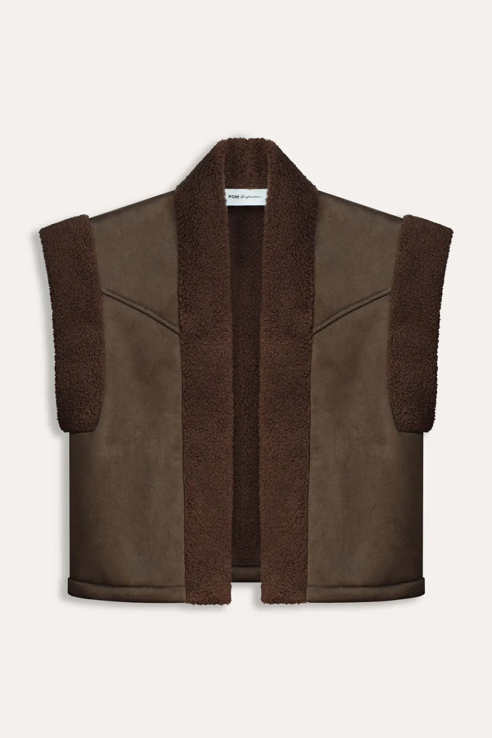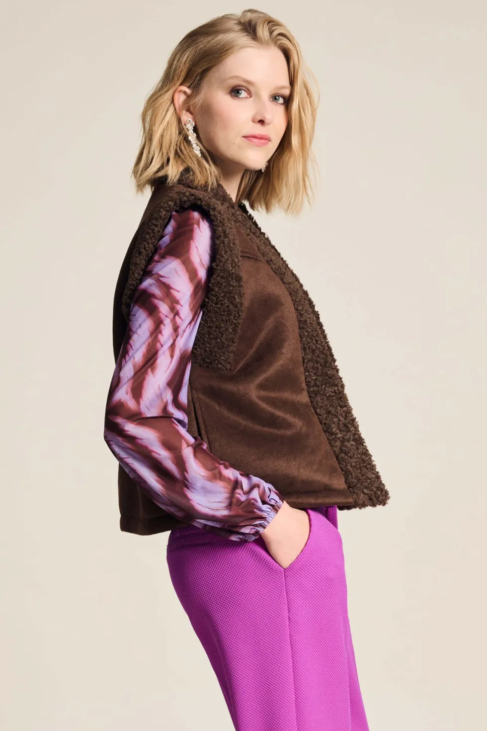 Lammy Gilet 8011 by Pom Amsterdam at The Wardrobe. Discover our brown lammy gilet, an absolute must-have for this season! With its teddy accents that continue into the lining, this gilet combines warmth and style in a unique way. This gilet is perfect paired with a jumper, blouse or dress. • Brown lammy gilet• Faux sh