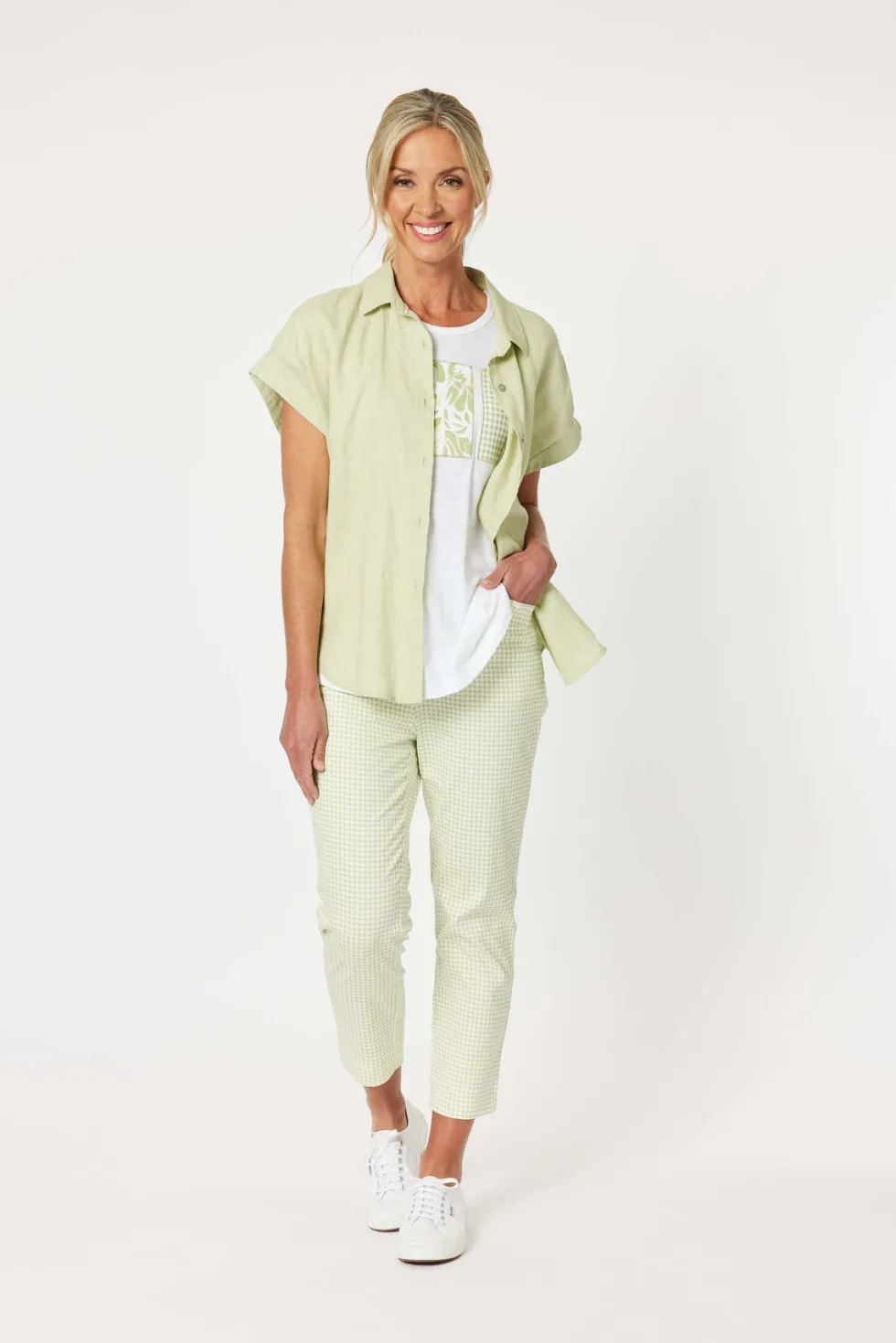Millie Linen Shirt – Celery by Gordon Smith at The Wardrobe Summer style at it's best in the new Millie Shirt by Gordon Smith Styled in their signature washer finish linen, so soft and cool to wear With an extended shoulder line and short sleeve that is made to move in We love this styled on it's own or over a tank or