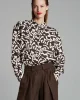 Kim Shirt 7904 by Pom Amsterdam at The Wardrobe. This unique blouse from the POM Amsterdam x Claes Iversen collection at The Wardrobe, inspired by abstract art, is a real eye-catcher for those who dare to stand out with their style. The blouse has a striking graphic brown-white pattern, consisting of playful, geometric