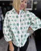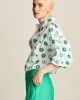 This white blouse has a pattern of embroidered green suns. The blouse is made of 100% organic cotton, so it feels wonderfully airy.• White blouse• Embroidered design• Mid-length sleeves• Row of buttons on the front• 100% organic cotton• Sustainable materialFit: The blouse has a wide fit and three-quarter sleeves. The m