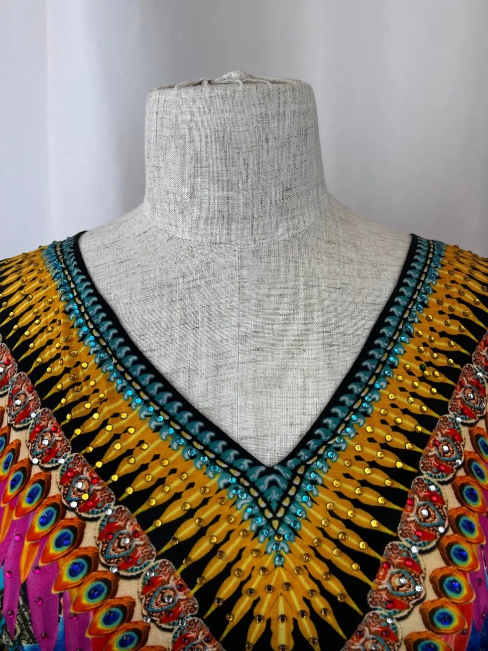 100% Viscose Silk Split On Shoulder Midi Length