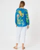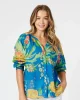 Tropics Shirt – Blue/Multi – 48125 by Threadz at The Wardrobe Brighten your wardrobe with The Tropics Blouse, a vibrant piece bursting with bold blooms and lush greenery. Set against a striking blue backdrop, the tropical-inspired print brings a fresh and lively touch to any outfit. This button-through style features l