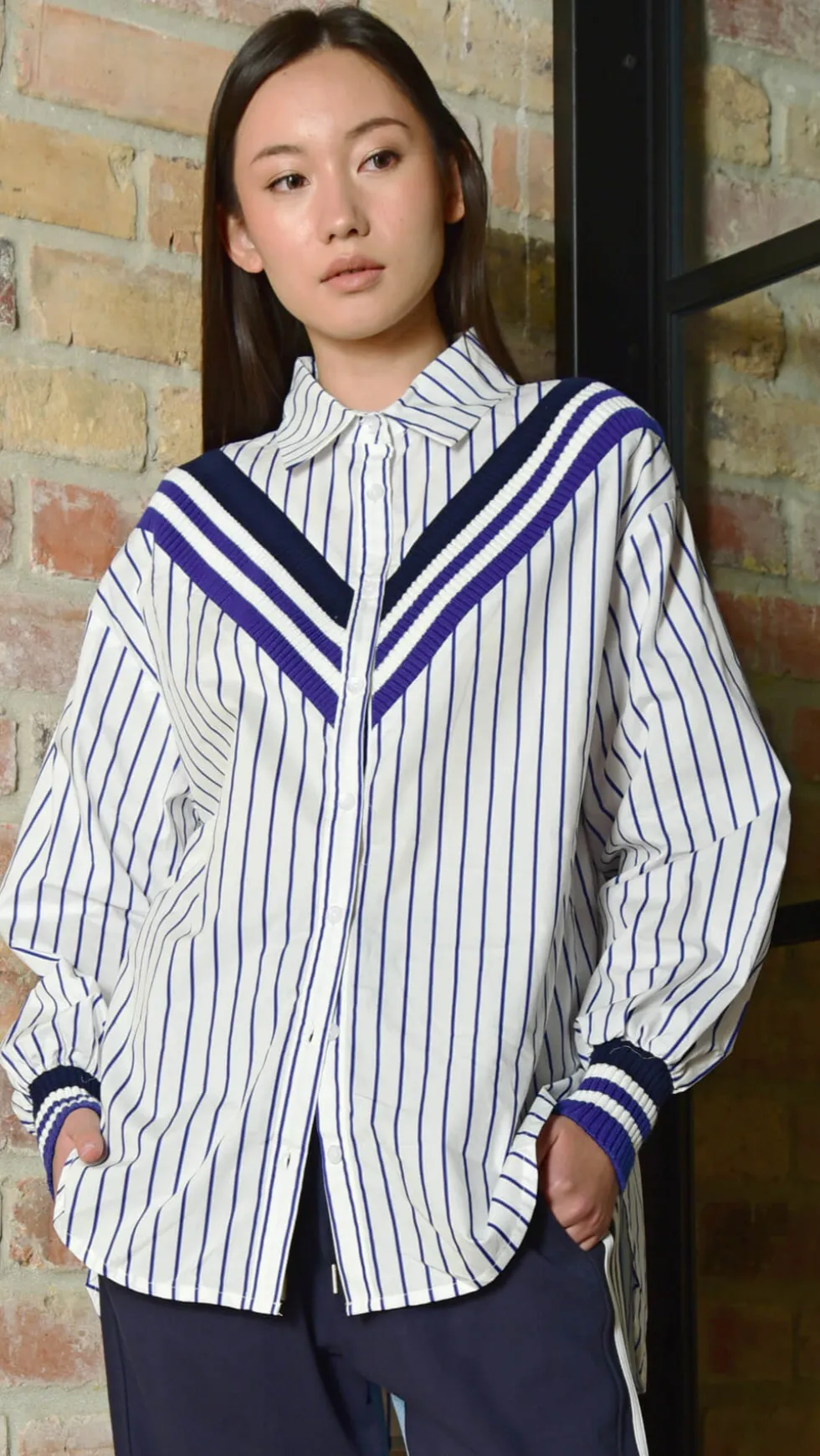 Get the classic Cooper look with a striped shirt. This season, crafted in the âWe Mean Businessâ cotton poplin fabric, the âJust a Little Ribâ shirt sports a generous, boxy fit and a contrasting ribbed detail running across the front of the shirt and cuffs, adding a unique touch. Pair this with the âZip to Be Squareâ t