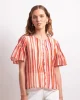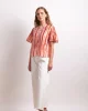 Draw The Line Blouse – Azure Stripe 2834 by Neris at The Wardrobe The Draw The Line Blouse is a striped short-sleeve shirt with a scoop neckline and button-down front. With a loose fit and subtle flared sleeve, it’s a playful piece that still feels polished. Designed in Christchurch, New Zealand. Softly voluminous and