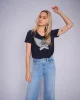 Gethi Deco Tee -Navy 170520 Mos Mosh at The Wardrobe Make a statement with this fitted tee, featuring intricate wing and letter artwork with hand-finished beading and embroidery. Perfect with denim for a casual edge or a tailored suit for a bold, stylish contrast. Shrinkage up to 5% Use a laundry bag Wash and iron insi