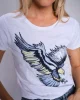 Rem Eagle Tee – White – MS169900 by Mos Mosh at The Wardrobe Make a statement with this fitted tee, showcasing an embroidered eagle print on the front with hand-finished stone and sequin details. Perfect with tailored pieces or vintage wash jeans for a relaxed vibe. Wash with similar colours Do not iron on embroidery U