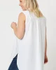 44870 – Jordan Sleeveless Shirt – White by Threadz At The Wardrobe Features: Sleeveless Relaxed fit Hi lo hem Button up Longline Fit Guide: 100% Cotton Soft collar Mother of pearl buttons Side splits