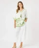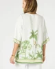 Amazon Print V Neck Top 47858 by Clarity at The Wardrobe. 80% Viscose / 20% Nylon Light weight,breathable Fabric Relaxed Fit Airy Short Sleeves Semi Sheer Fabric Unlined- nude underwear required. Can Pair with the Amazon Printed Wide Leg Pant Hip Length Model 175cm Tall wearing Size S/10