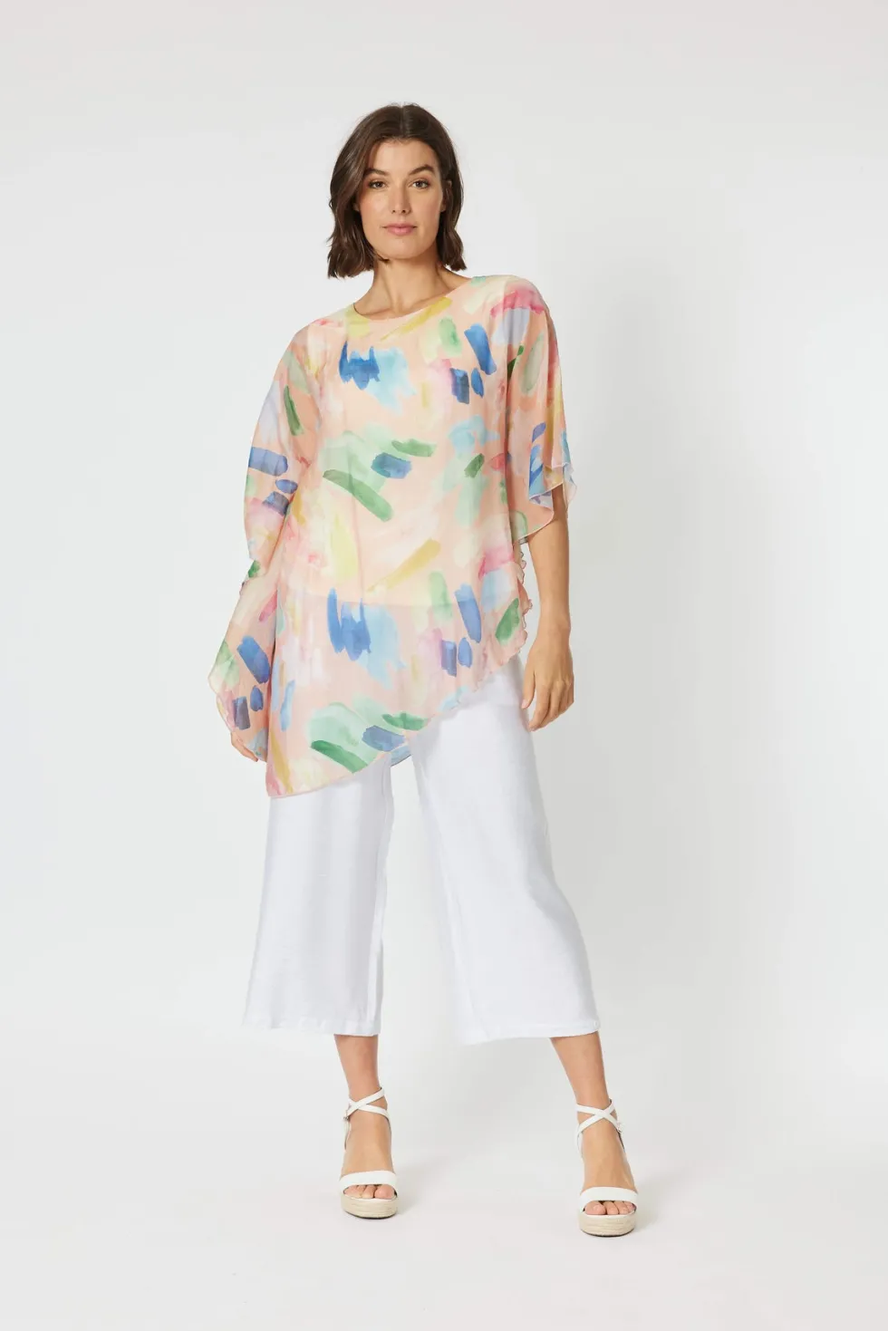 Genoa Layered Top 45897 by Clarity at The Wardrobe Features: Print perfect in the Genoa Layered Top Clarity have curated their collection and delivered the most divine pieces this season Relaxed easy pop over the head style, flattering asymetric hemline and built in jersey cami Perfect to style with the Villa Pant Fit