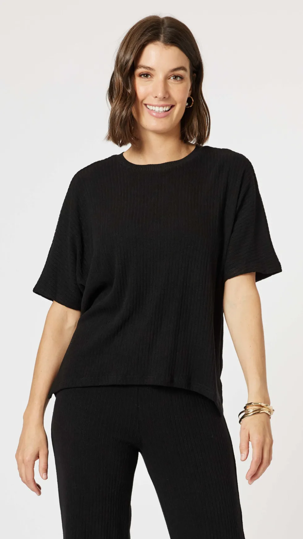 Ribbed Lounge Top – Black 46977 by Clarity at The Wardrobe Wrap yourself in luxurious comfort with our Ribbed Lounge Top. This soft and stylish top is the perfect addition to your loungewear collection. With its ribbed texture, it offers a cosy fit that is sure to make you feel relaxed and at ease. Pair it with our ma