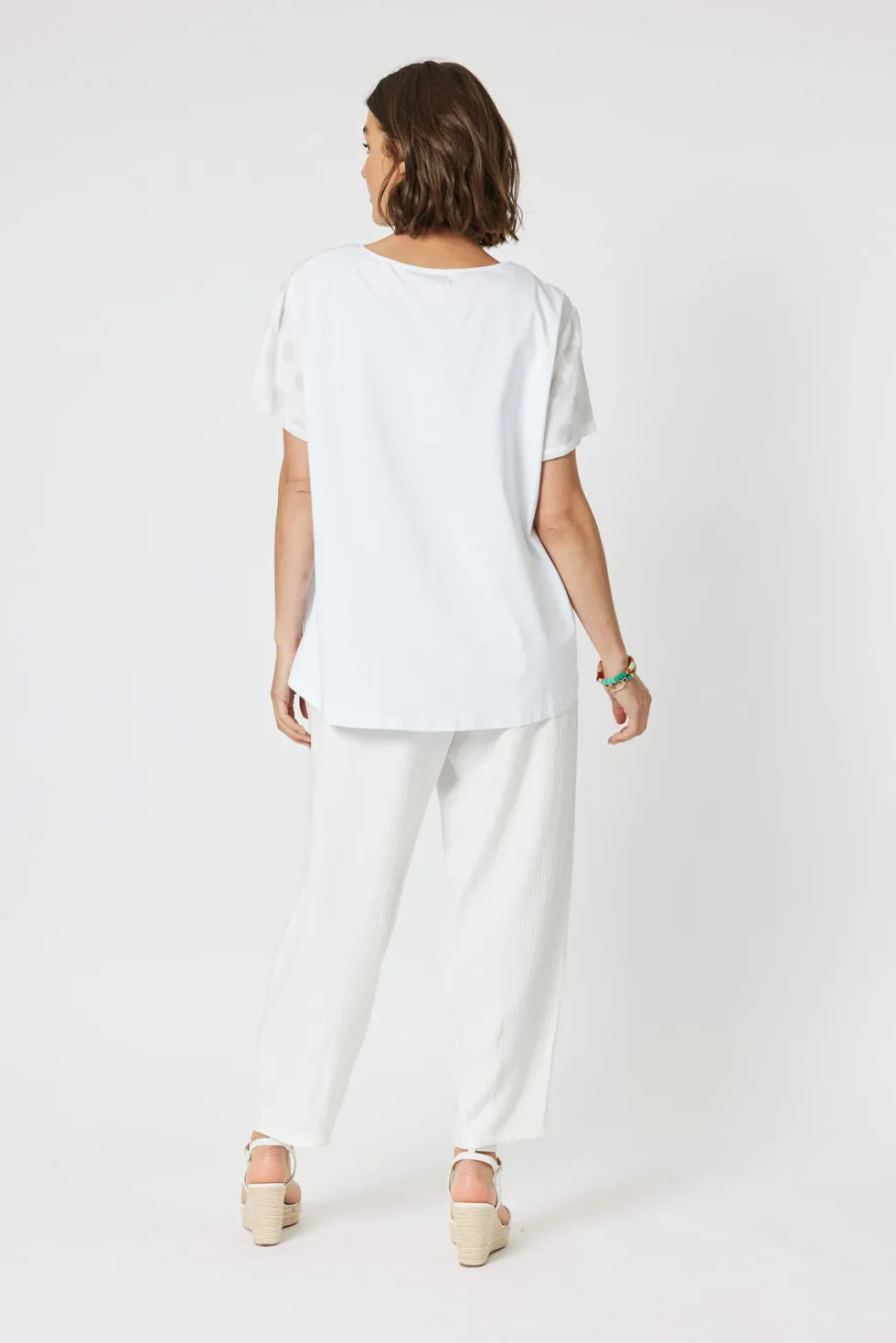 Features: The Riviera Spot Tee 46310 by Clarity combines playful polka dots with a relaxed fit A mix of fabrics, with a stretch knit back making it so comfortable to wear Easy pop over the head styles with the perfect short sleeve This tee is perfect for casual outings and effortless style Fit: True to Size Buy your us