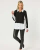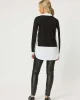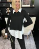 44102 – Sonia 2 In 1 Top by Clarity at The Wardrobe Features: Relaxed fit Collared Long sleeves Fit Guide: Main:65%Viscose/30%Polymadie/5%Elastane Contrast:100%Cotton Splices jersey knit and woven poplin Contrast collar, cuffs, sleeve and side panels 1/2 button placket