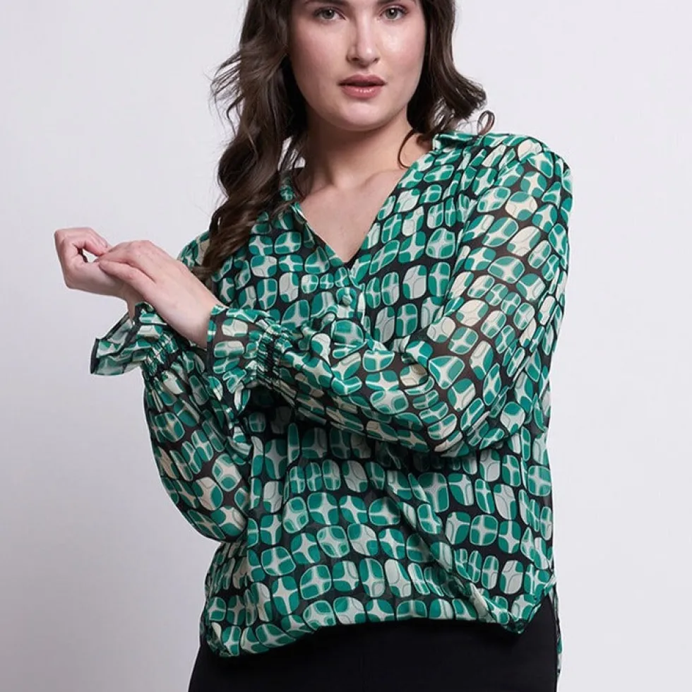 Gala Twist Blouse – Lava Green 7781 by Foil available at The Wardrobe 100% Polyester Cold machine wash