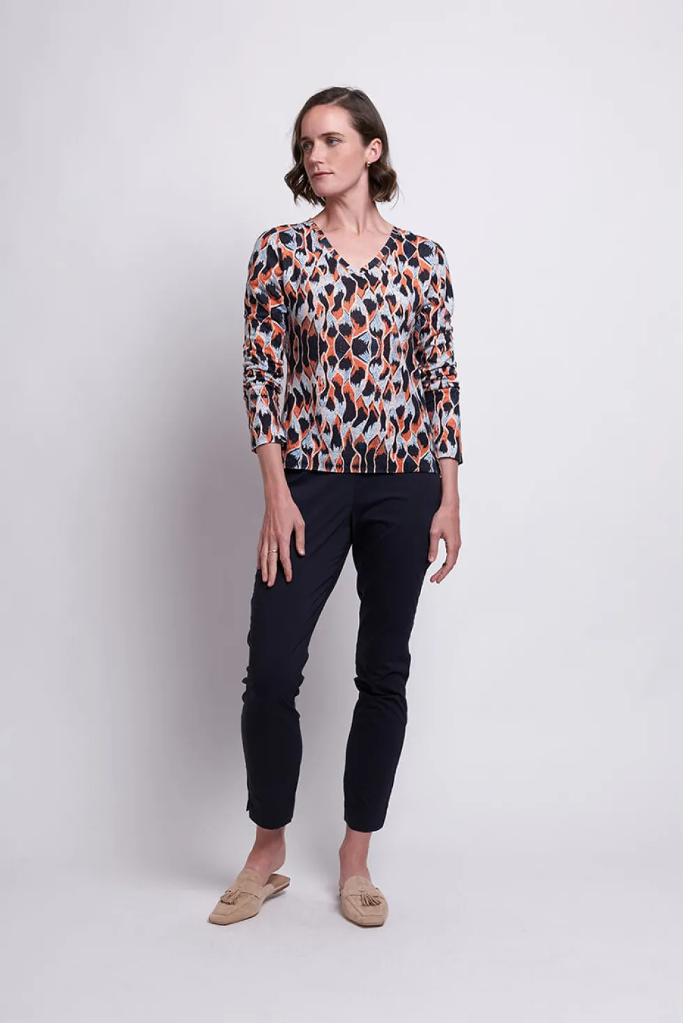 Wanna Spoon Top – Viper Orange 7627 by FOIL available at The Wardrobe 100% Linen Machine Wash with Similar Colours. Reshape whilst damp.