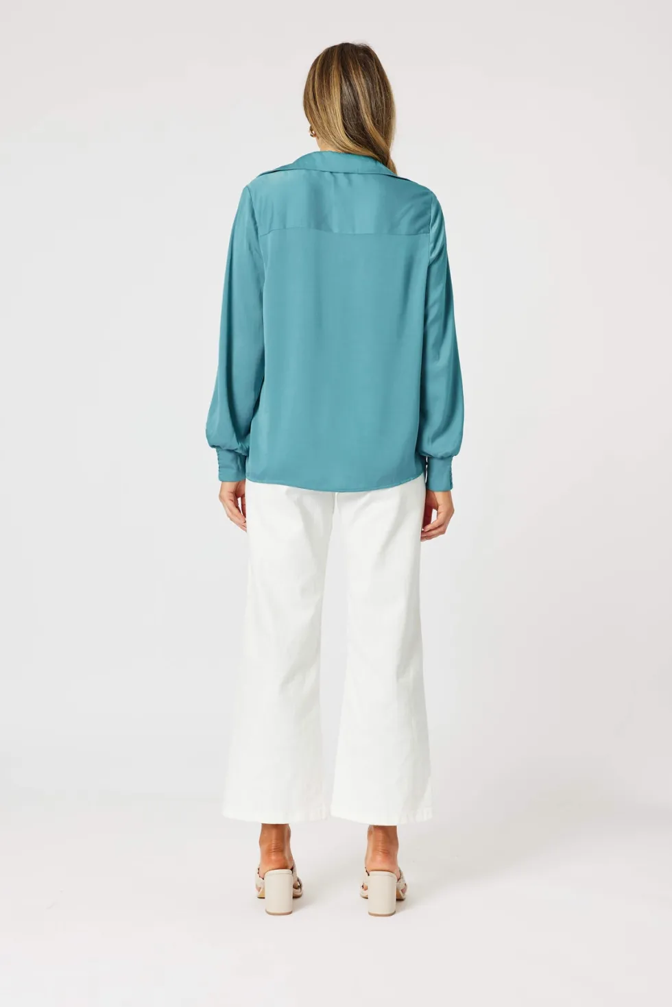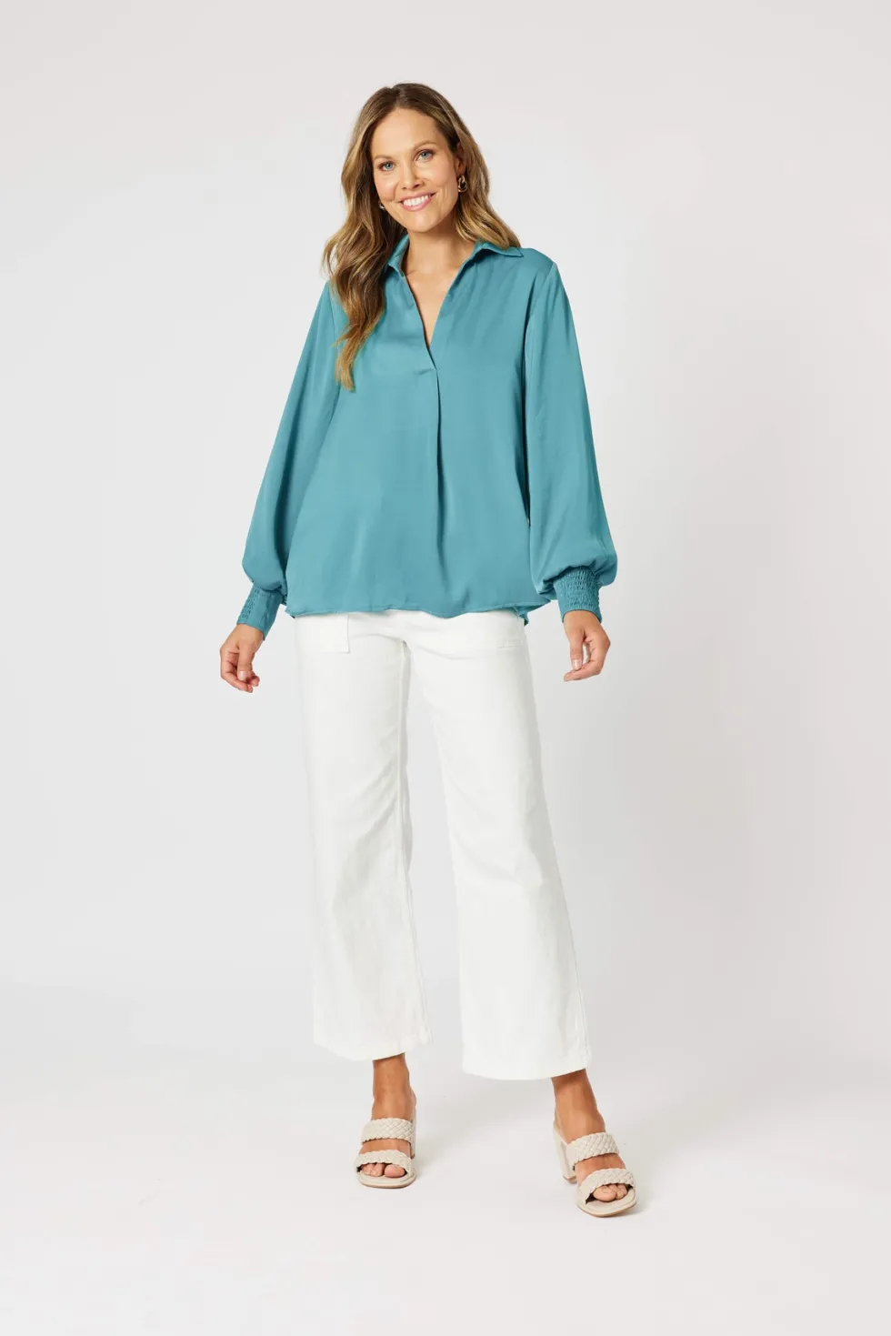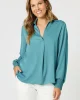 The Hammock & Vine Luxe Top 47291 at The Wardrobe is designed with a flattering, flowing silhouette The elegant collar and V-neckline add a touch of sophistication, while elasticated cuffs offer versatile styling options. It transitions seamlessly from day to night, making it the perfect choice for both a polished