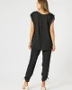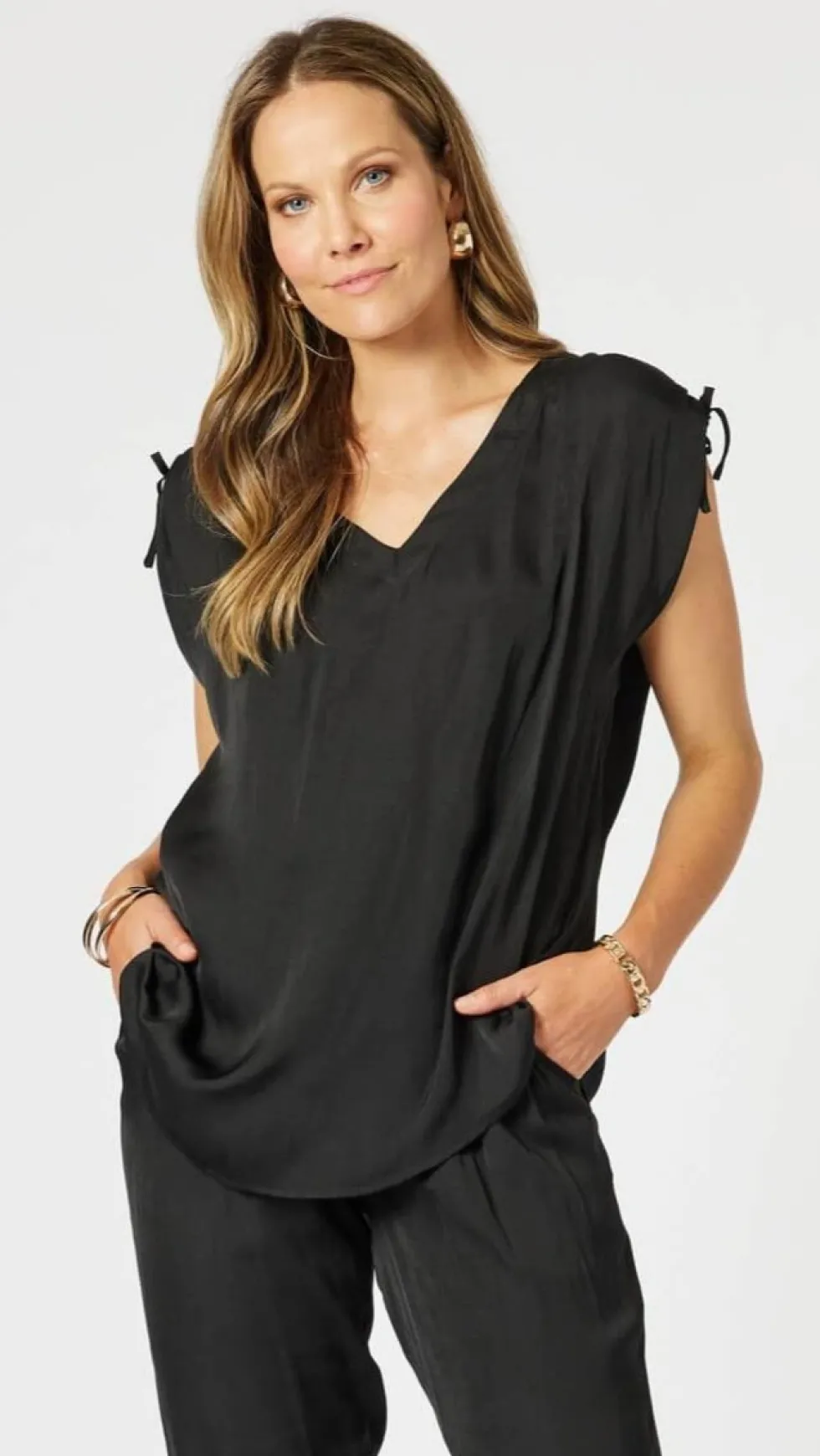 Traveller Luxe V Neck Top – Black 46145 by Hammock & Vine at The Wardrobe Features: The Traveller Luxe V Neck Top is a chic and practical addition to your wardrobe Styled in their signature silk touch fabric, it’s perfect for travel and everyday wear Mix & match back with the new prints of the season, design