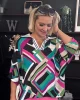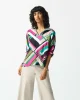 Paradiso Georgette Geometric Print Box Top 242176 by Joseph Ribkoff at The Wardrobe This is a sale item and is only eligible to return for a store credit or exchange. Unleash your inner fashion maven with a sassy geometric-printed georgette boxy top. Short dolman puff sleeves add a touch of whimsy, while the wide s