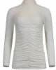 Aston Ruched Top – Black Multi 2932PL by Loobie's Story at The Wardrobe. Fitted mesh top with a grown on neckline, with ruching down the centre front create a flattering fit. Self lining through body. White image so you can see the gathering. 90% Polyester 10% Spandex Gentle cool machine wash. Do not bleach. Dry away