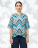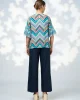Wanderlust Top – Indigo LS3070 by Loobie's Story at The Wardrobe Printed sheer top with a crew neckline with a square hem and side splits. Flared sleeves feature gathered tiers in a contrast micro print. Printed A-line cami included. 100% ViscoseInstructions:Cool hand wash using mild detergent, do not machine wash.