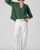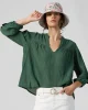Relaxed blouse with a mandarin collar and a U-shaped neckline, with 3/4 length sleeves with tuck detailing and elasticated cuffs. 80% Rayon, 20% Nylon Gentle cold machine wash with like colours, using mild detergent. Do not rub/soak//wring/bleach. Do not tumble dry. Dry away from direct sunlight. Warm steamy iron on re