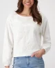 Bloom and Grow Sequin Flower Top – Milk 409100 by Monari at The Wardrobe. High-quality cotton Sweatshirt Floral pattern Tone-on-tone sequins Regular fit Boat neck Long sleeves Sleeve cuffs with crimping Logo plate The model is 1.77 m tall and wears size 36. The length of size 38 is 56 cm This sweatshirt captivates with