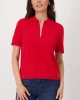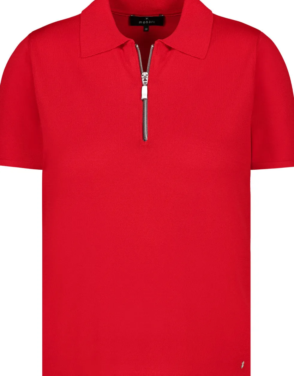 Zip Polo Tee – Red 410009 by Monari at The Wardrobe Hand wash, Do not bleach, Do not tumble dry, Iron at moderate temperature, Do not dry-clean 63% viscose, 37% polyamide