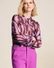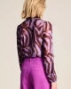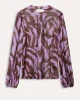 Brown Feathers Top 7950 POM Amsterdam at The Wardrobe. 94% Recycled Polyester 6% Elastane This purple mesh top with feather pattern features a handmade print. The print is inspired by a bird's feathers. The fabric is made of 95% recycled polyester, making this a more sustainable item.