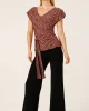 This is a sale item and is only eligible to return for a store credit or exchange. Diamond Reversable Tie Top – Coral by Sacha Drake at The Wardrobe • Premium stretch jersey • Easy care, easy wear, travel friendly• Reversible style – wear v-neck or boat-neck• Cap sleeves• Fitted style• Attached ties on side• Made in Au