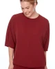 Solid Vegan Silk Vented Top 67927UP by Up Pants at The Wardrobe. An elevated upgrade to your every day, this basic essential is the ultimate in low-key luxury. The look is minimal and streamlined, punctuated with flirty front vents for an unexpected edge, and slightly longer sleeves that balance out the entire look. Pe