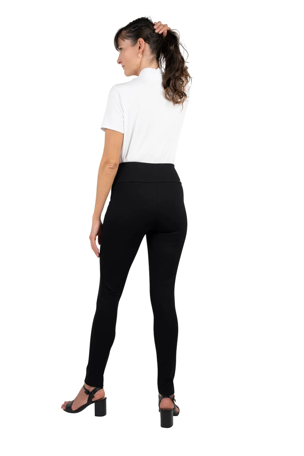 Made in Australia, designed in Canada. Slim leg pull-on pant 31" Inseam 9.75" Front rise, sits comfortably overtummy 2.75" Waistband creates a smooth waist Materials and Care Wash inside out on a cold, gentle cycle. Wash with like colours. Do not bleach, hang to dry, iron low on reverse if needed. Do not dry clean 67